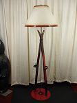 Lampe sur pied. Trois bâtons de hockey avec rondelles. |